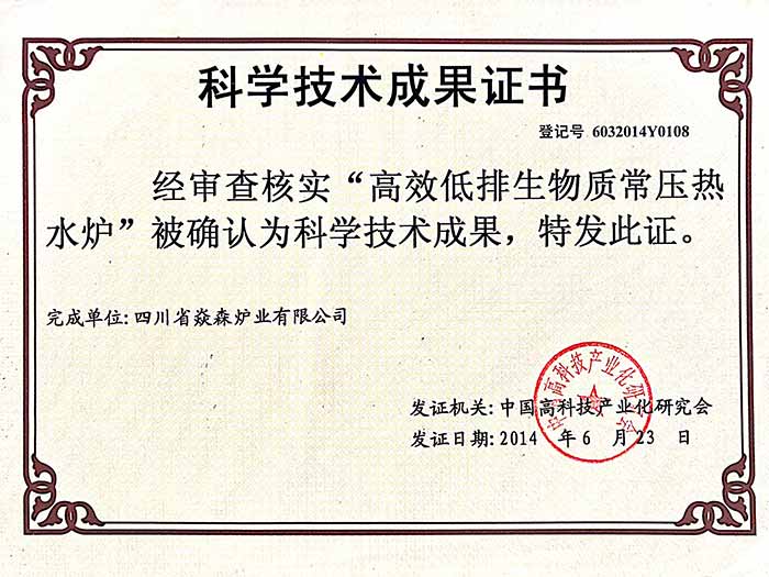 四川省焱森爐業(yè)有限公司注冊資金1200萬元,生產(chǎn)車間近1萬平方米,是一家集生物質(zhì)爐研發(fā)、設(shè)計、生產(chǎn)、銷售、服務(wù)、技術(shù)咨詢于一體的國家高新技術(shù)企業(yè)。公司技術(shù)力量雄厚,生產(chǎn)設(shè)備齊全,工人技術(shù)熟練,所有產(chǎn)品嚴格按照國家相關(guān)標準及ISO9001:2008質(zhì)量管理體系實行模具化、規(guī)范化生產(chǎn),年產(chǎn)能力達15萬臺以上。公司擁有建全的14001環(huán)境體系認證及18001職業(yè)健康安全體系認證。我公司擁有自己的知識產(chǎn)權(quán)及自主品牌“焱森”,是國家高新技術(shù)企業(yè),擁有54項專利。